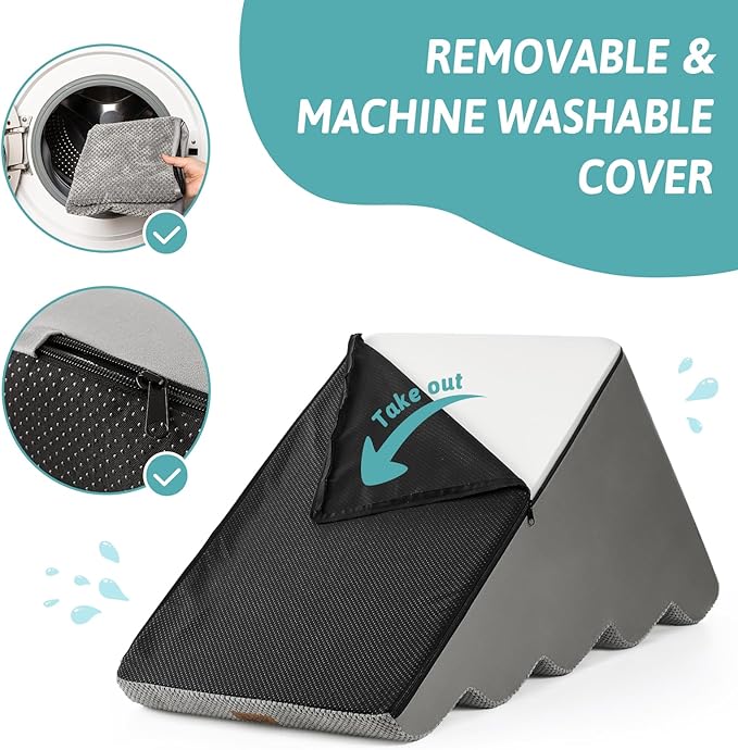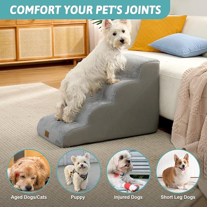 - Stable and Durable: stairs for dogs to get on the bed adopt 30D high-density pure sponge, which provides better support while providing a soft return contact surface, reducing the pressure on the joints when pets repeatedly jump on high bed, sofa, couch and car. The stairs are covered with high-quality corduroy to provide additional stability