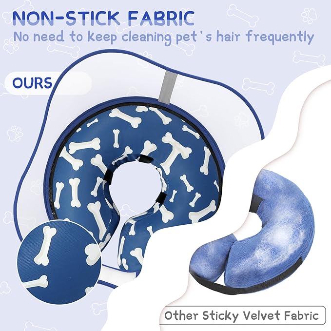 - Easy Maintenance with Non-Stick Fabric - Unlike other velvet dog inflatable neck collars, our dog e collars is wrapped in an upgraded non-stick fabric on the exterior, significantly reducing the need for frequent cleaning due to pet hair. The convenience of a zippered removable cover allows for easy washing, ensuring the dog surgery collar stays fresh and hygienic.