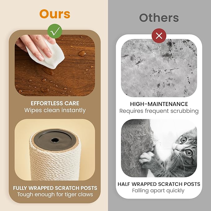 - Built for Long-Lasting Scratching:Made with 7 fully wrapped cotton rope posts and ultra-fine fiber cloth posts, it is more wear-resistant and less prone to shedding. Effectively satisfying the natural scratching instinct of cats.