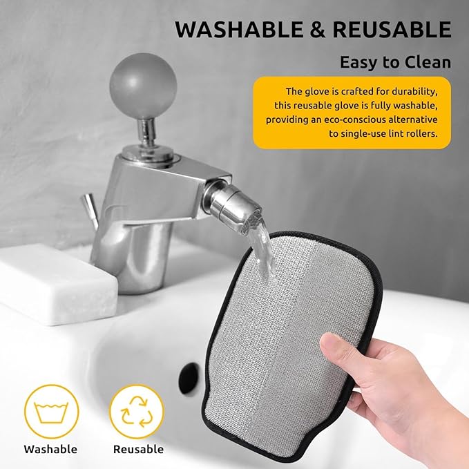 - Eco-Friendly & Reusable Design:Ditch disposable lint rollers for good! These washable gloves offer a sustainable way to remove pet hair—simply shake or rinse clean after use. Say goodbye to wasteful sticky papers and lint rollers while saving money and reducing your environmental impact