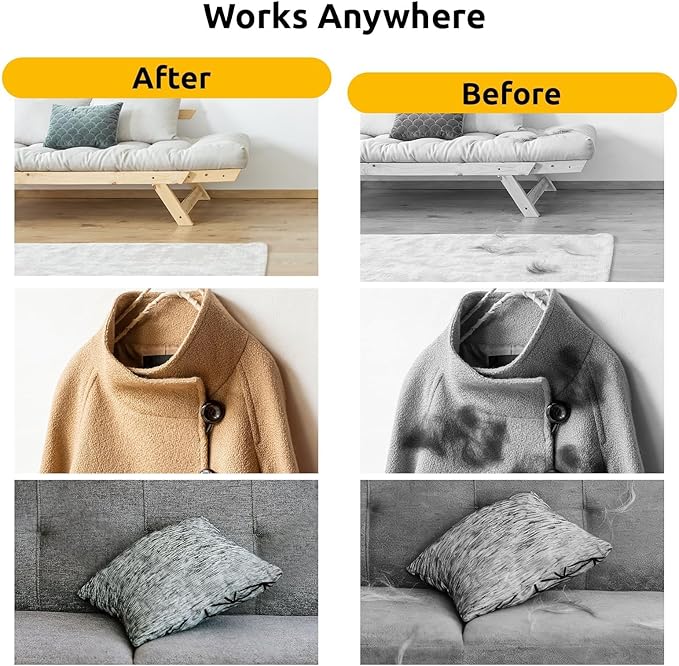 - Works on Multiple Fabric Surface:This pet hair removal glove works on almost all fabric surfaces, whether it's clothes, pet beds, sofas, carpets, or car seats. Simply glide it back and forth,no tedious rolling needed—to easily pick up lint and pet hair. Enjoy an effortless cleaning process