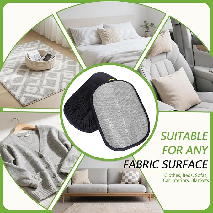 - Electrostatic Hair Lift Technology: Using static charge, the glove attracts and holds pet hair, dust, and lint in one sweep. Glide over fabrics—no hard pressing or repeated rolling required. It’s the effortless way to clean.