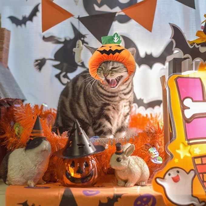 - 1. Perfect for Halloween This pumpkin shaped pet hat is an ideal accessory for Halloween. It can dress up your pet, making them the star of Halloween parties or photo shoots, and adding a festive and spooky atmosphere to the holiday.