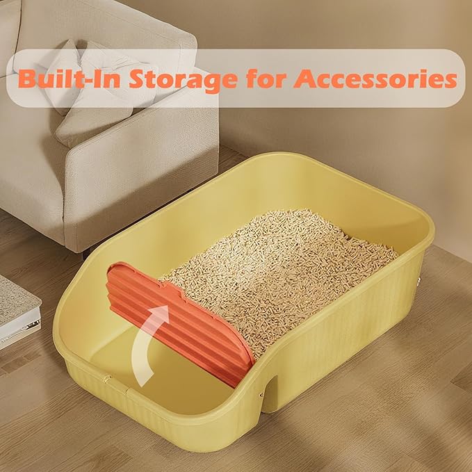 - 【High Sides for Splash Protection】Designed for energetic cats, this jumbo high-wall cat box features raised sides to prevent litter from spilling during digging. A smart choice for multi-cat households or playful felines, it keeps your home neat and splash-free.
