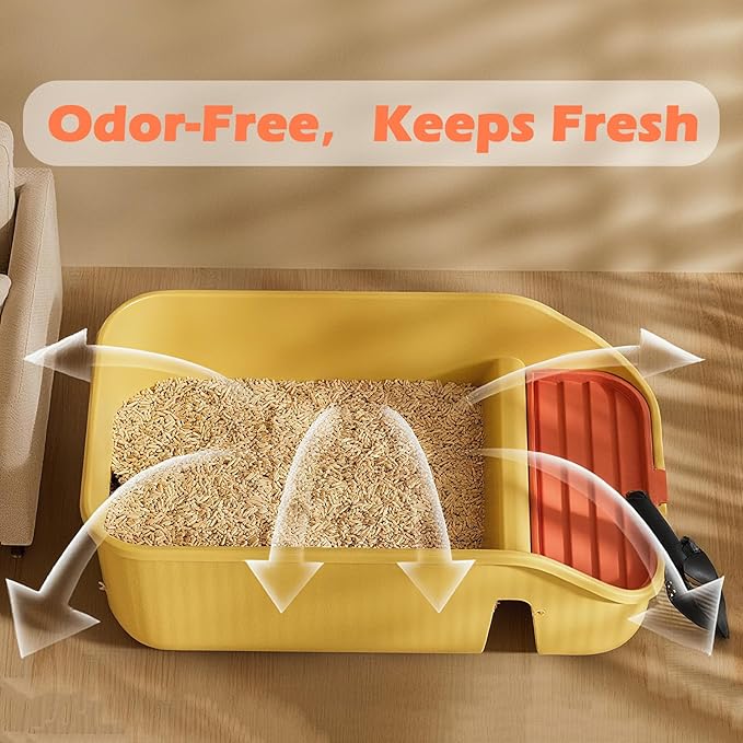 - 【Food-Grade PP Material】Crafted from odorless, non-toxic PP plastic, this plastic kitty litter box is safe even for cats that tend to lick surfaces. Ideal for senior cats, kittens, or sensitive cats, it ensures hygiene and durability.