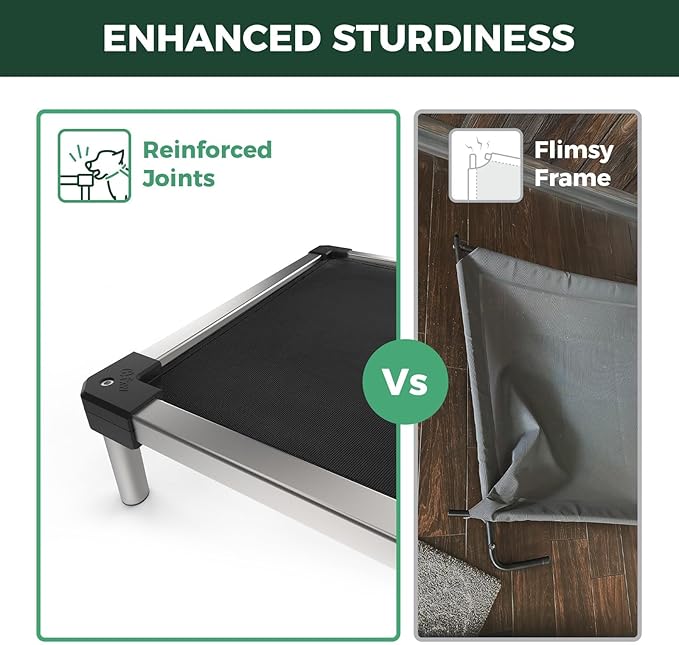 - Indestructible & Dog-Safe: Crafted with a premium aluminum alloy frame and chew-proof edges, this bed withstands aggressive chewers while keeping your pup’s gums safe and happy.