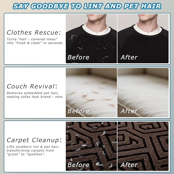 - DUAL-ACTION CLEANING & GROOMING:More than just a household fur remover, it's also a gentle deshedding glove for your pets. Use during brushing sessions to capture loose hair directly from your dog or cat's coat, helping reduce future shedding around the house while promoting a healthier bond with your pet.