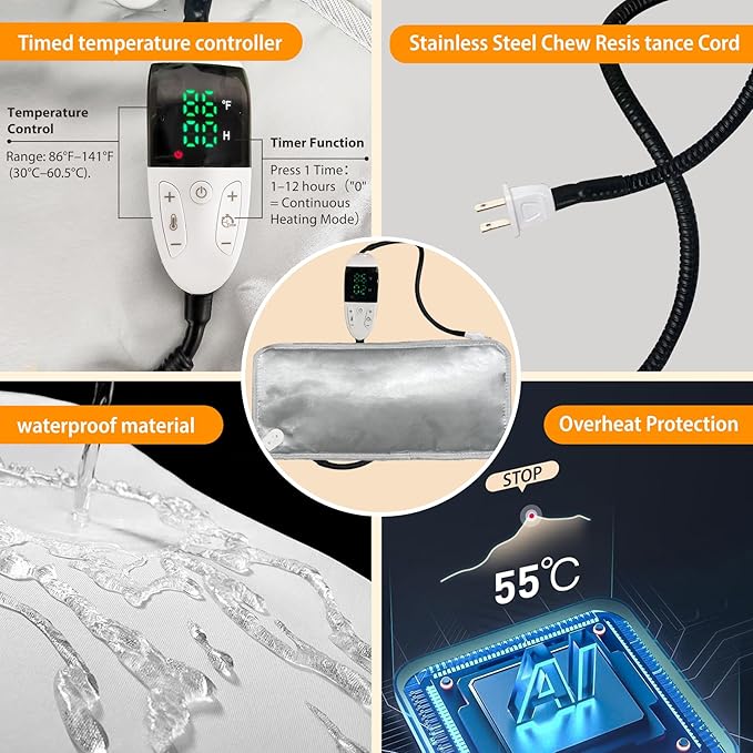 - Smart Temperature & Timer Control- Adjust temperature and set 1–12 hour timers on both units. Preheat for cold mornings or evening naps. Let your cats enjoy controlled warmth anytime—without leaving heaters on.