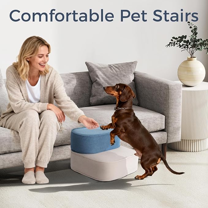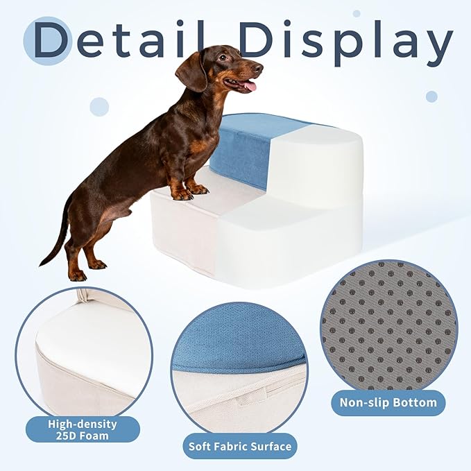 Dog Stairs for High Beds 10.6" H 2-Step Pet Steps Non-Slip Balanced with Anti-Slip Washable Cover and Suitable Durable High Density Foam for Small Dogs Cats or Senior Dogs with Arthritis