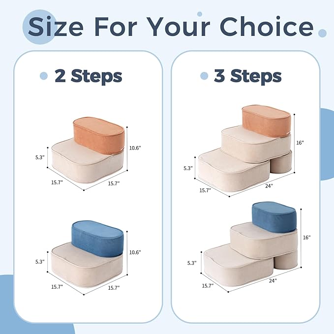 - 【Joint-Friendly and Comfortable】 This pet stairs is made of high-density foam, which can effectively cushion the pressure on the dog's paws, especially suitable for senior dogs or dogs with joint problems. The reasonable step design conforms to the dog's physiological structure, allowing the dog to climb more easily and comfortably, and reducing leg muscle fatigue