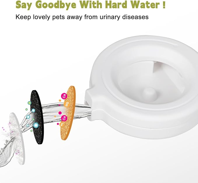 - Triple Filtration System:Equipped with a 3-layer filter combining cotton mesh, activated carbon, and ion exchange resin. It efficiently captures pet hair, food particles, and impurities while reducing odors, ensuring cleaner and fresher water for pets.