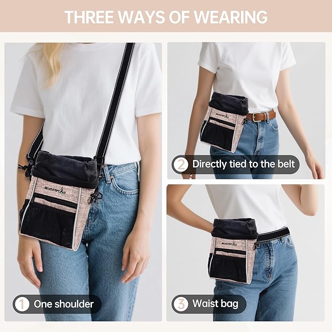 - Multiple Carry Options: This dog treat pouch can be worn in various ways to suit your comfort, including an adjustable waistband, crossbody style, or belt clip, ensuring you have hands-free convenience at all times.