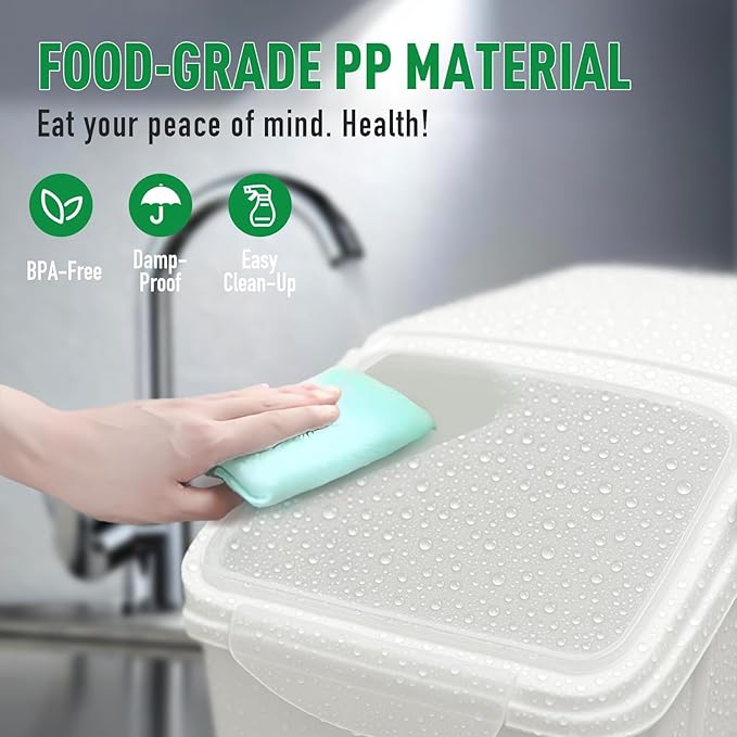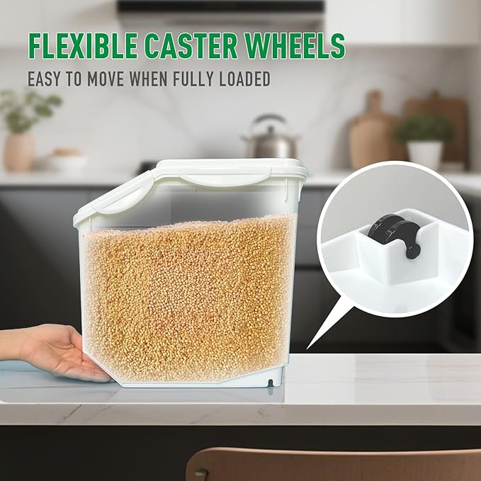 2 Pack Large Dog Food Storage Container, Flour Rice Storage Bin with 2 Measuring Cups, 25Lbs (15 Liters) with Wheels Seal Locking Lid PP Material, Sugar, Cereal and Dog Cat Pet food Containers