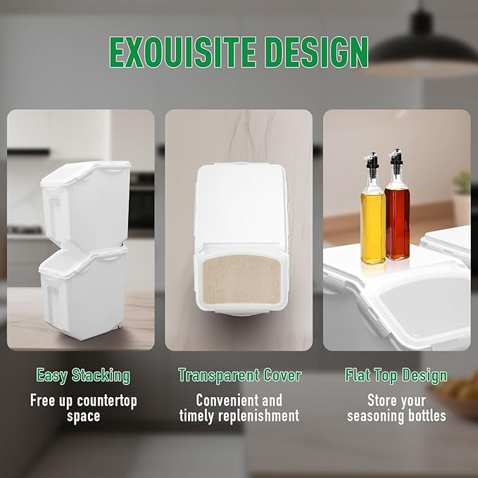 - 【MULTI-FUNCTIONAL FOOD STORAGE CONTAINERS】This ingredient flour bin features a large capacity of 25 Lbs(15L); Can store different ingredients separately such as rice,baking sugar, flour,corn,soybeans,grain,pet dry food and so on. one set contains 2 flour storage containers, which brings you great convenience, and it is a must-have kitchen tool for every family.