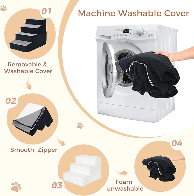 - 【Machine-Washable Cover】Keeping these dog bed stairs for dogs fresh and tidy is a breeze.Simply remove the foam core and wash the outer cover separately.Please note, the foam core should not be machine washed or dried to ensure long-lasting use and comfort for your pets