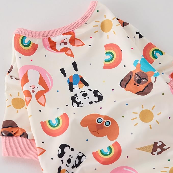 Dog Pajamas Onesie for Small & Medium Dogs - Polyester, Cozy, Wrinkle-Resistant Four-Legged Apparel (Pink White, X-Large)