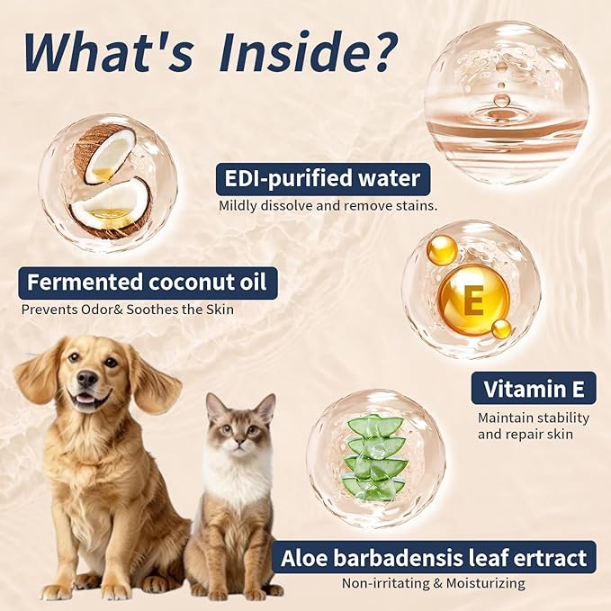 - 【Safe natural ingredients】 Ear cleaning dog pet wipes are made of natural, high-quality and safe extracts, hypoallergenic and non-irritating. EDI pure water and aloe vera extract clean and moisturize, ferment coconut oil and vitamin E to deeply nourish skin and keep faint coconut.
