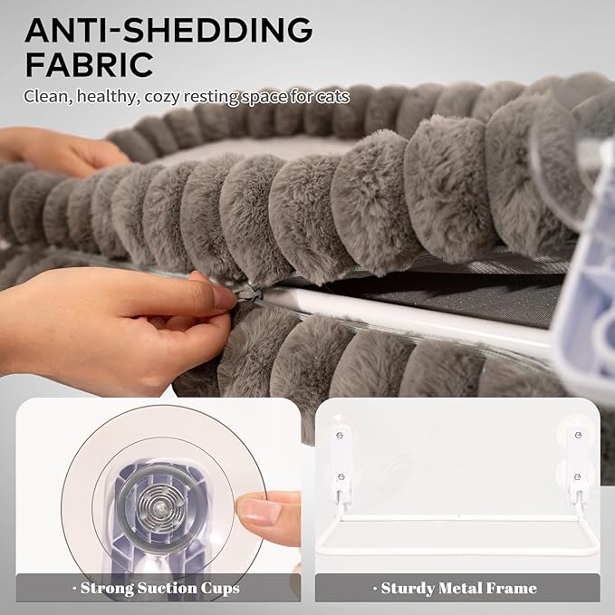 - Sturdy & Stable: Supports up to 40 lbs—even when your cat jumps and plays, there’s no risk of falling. Fits cats of all breeds and sizes.(For stronger suction, gently wipe the suction cups with a damp wipe before use)