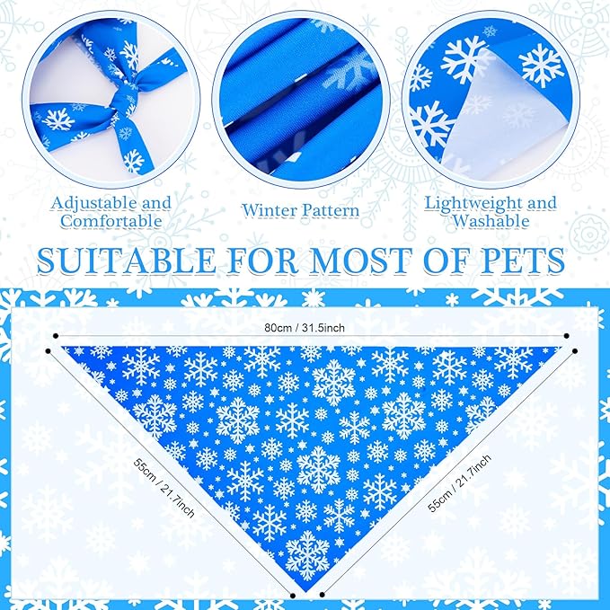 Abbylike 100 Pcs Winter Dog Bandanas Bulk Blue Snowflake Bandanas for Dogs Triangle Kerchief Bibs Scarf Set for Pet Winter Costume Photo Props Accessories Pet Shops, 25 Styles(31.5 x 21.7 x 21.7 Inch)