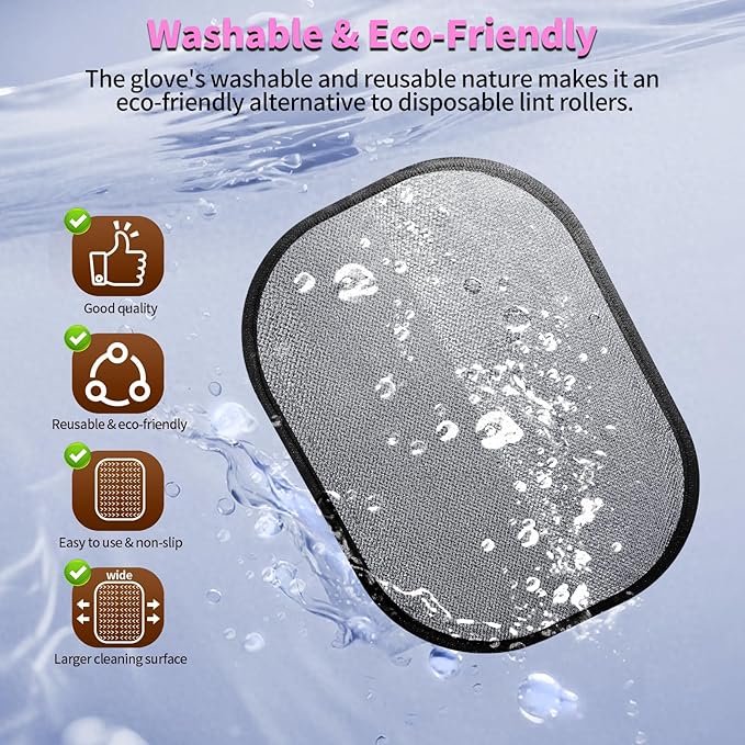 - 【Reusable & Easy to Clean】 Our pet hair removal glove is a sustainable choice for pet owners, as it is washable and reusable. Say goodbye to wasteful sticky papers and lint rollers while saving money and reducing your environmental impact. Cleaning is effortless—simply shake off the debris or rinse under water for repeated use.