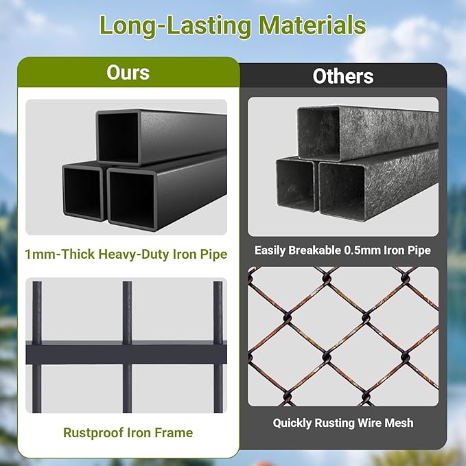 - Durable & Weather-Resistant Construction: Built to endure the elements, this dog kennel outside features a robust anti-rust coating that resists bending, corrosion, and color fading. Its solid fence can withstand chewing and scratching, offering reliable long-term performance in all conditions.