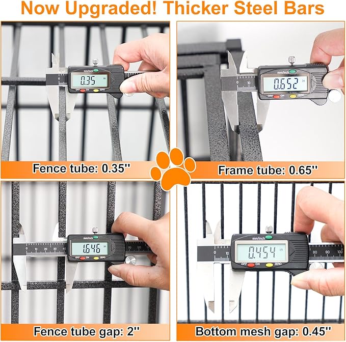 - Easy Hygiene and Maintenance: Our dog kennels for inside features a paw-friendly METAL floor grid and pull-out leak-proof trays for simple cleanup of waste, hair, and food. The grid is gentle on paws and offers excellent drainage, while the high-quality trays ensure quick cleaning, even during accidents or feeding times. The durable trays also reduce noise, making maintenance easy and efficient